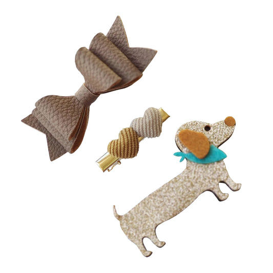 Gleebee Doggie Brown - Set of 3 Hair Clips