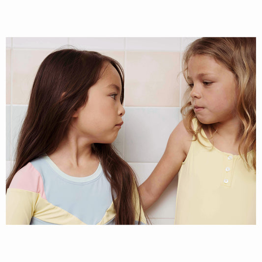Pacific Rainbow has re-invented and modernized swimwears that kids and teens used to love in the 90's. Comfortable and glamorous swimsuits that have marked the minds of today mums. They also use totally SPF50 fabrics to protect all kids from the sun rays.