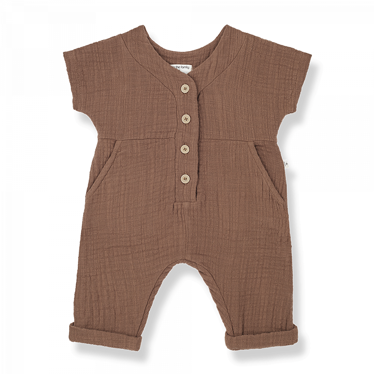 Rock the casual cool look with the 1+ In The Family Adriano Overall! Featuring short sleeves, convenient side pockets, and stylish front buttons, this overall is perfect for any laid-back occasion. Dress it up or down, this is a versatile piece that will elevate your little ones style game.