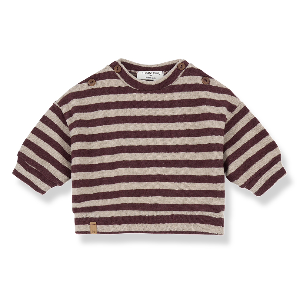 This playful sweater from 1+ In The Family features cozy fleece material and fun stripes, perfect for little ones who love to snuggle up in style.