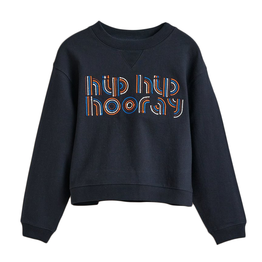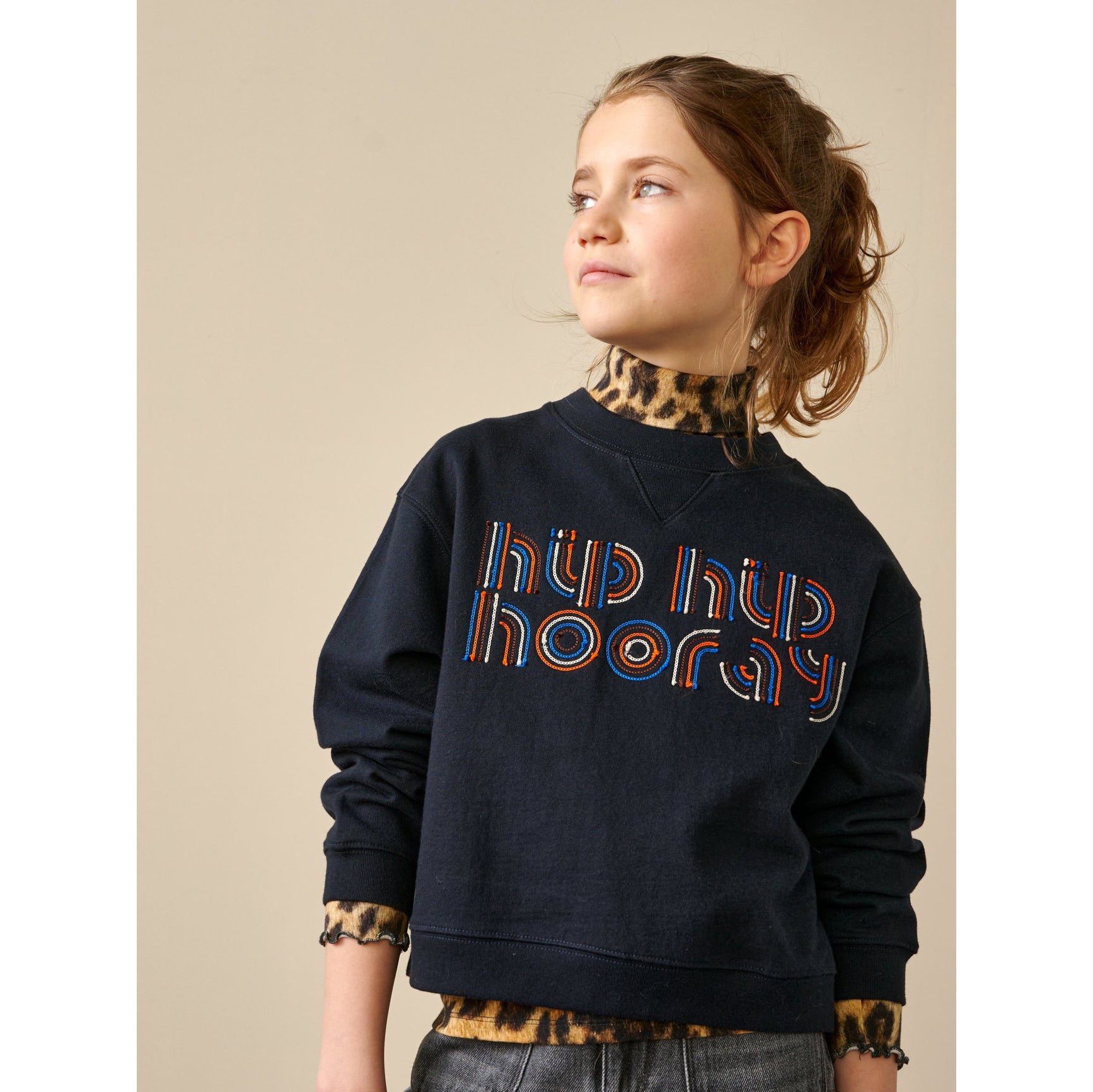 HIP HIP HOORAY, this is the sweatshirt for happy days! The Azou Sweatshirt from Bellerose Kids comes in a classic cut with ribbed edges, crew-neck, and dropped shoulders, it is crafted from 100% eco-friendly cotton fleece and features an eye-catching multi-color embroidery. We recommend wearing it when the weather is gloomy as a way to set the mood and start the day with a healthy dose of good vibes.