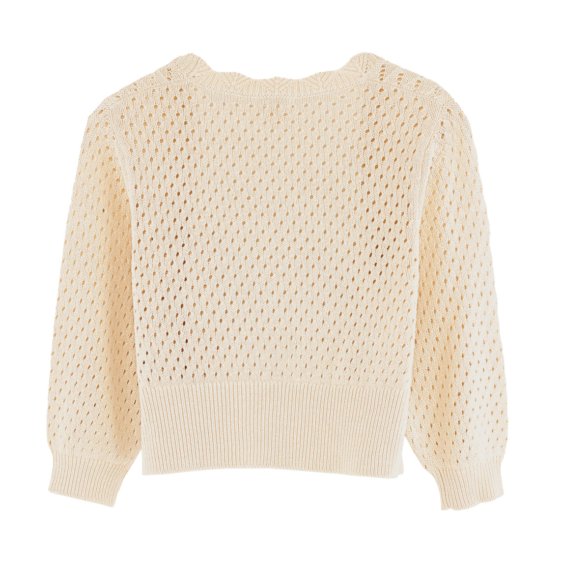 Regular-fit cardigan from Bellerose with a straight silhouette, v-neck, and scalloped edges. Made from a cotton blend, it features traforato knit sleeves and zig-zag open needlework on the bodice.