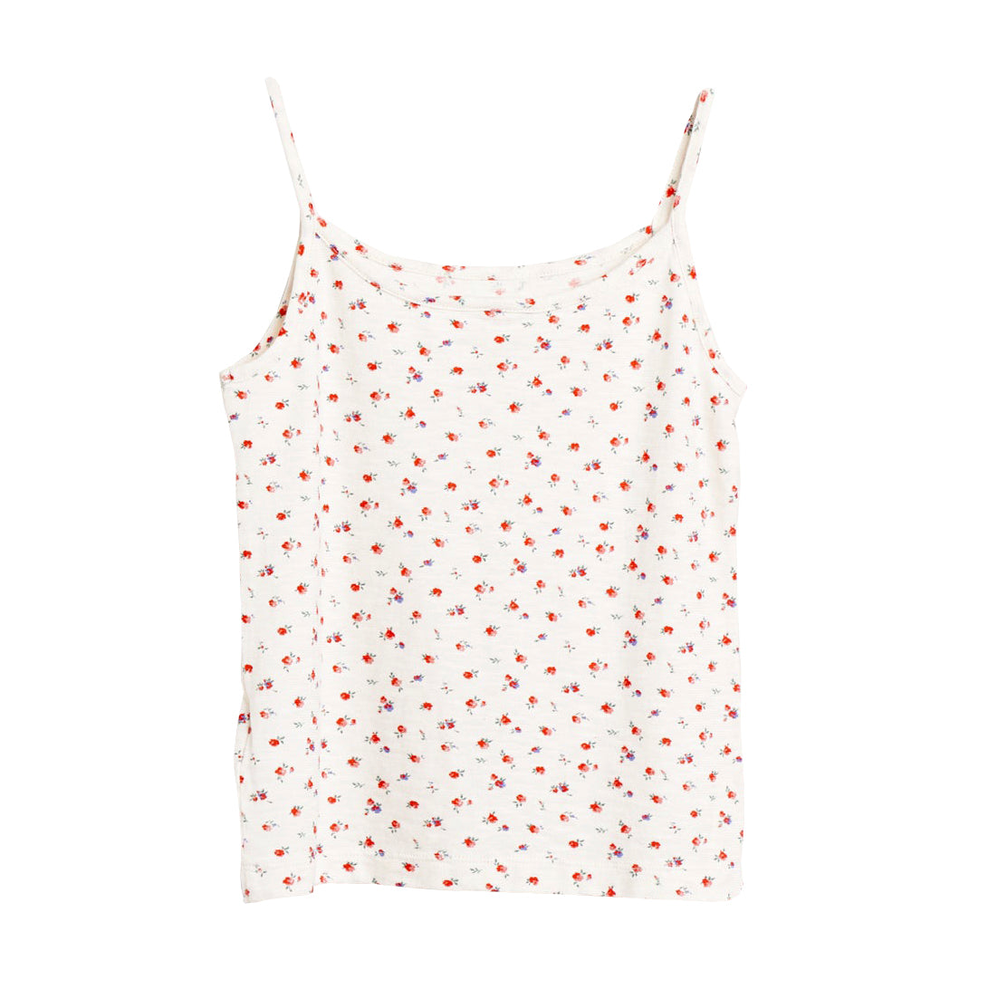 Details: Spaghetti strap tank top | Floral print | Tiny BLR embroidery at the bottom