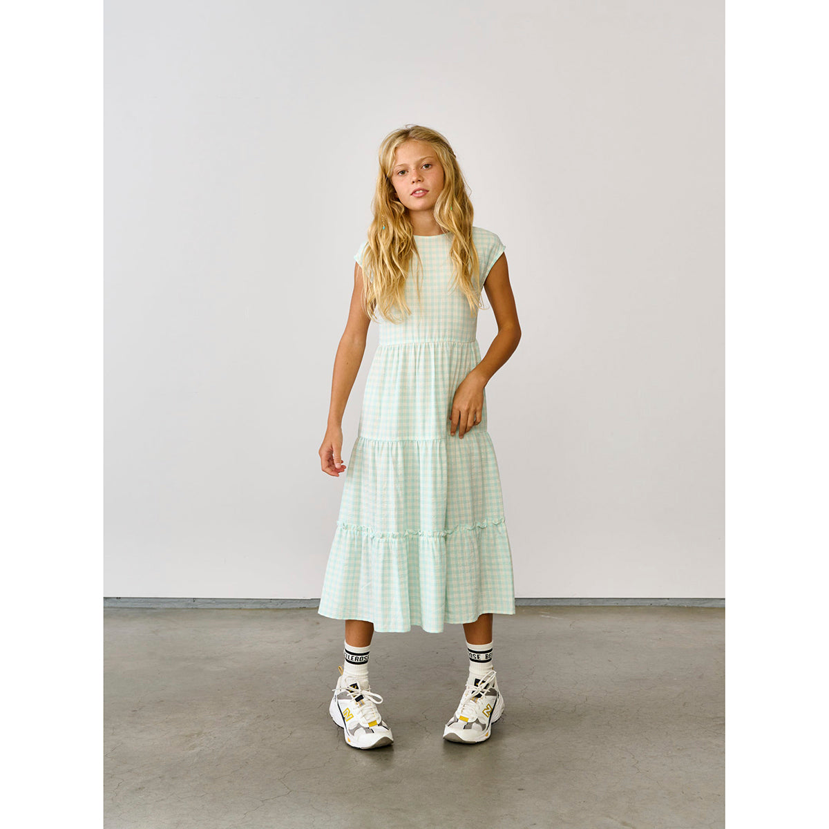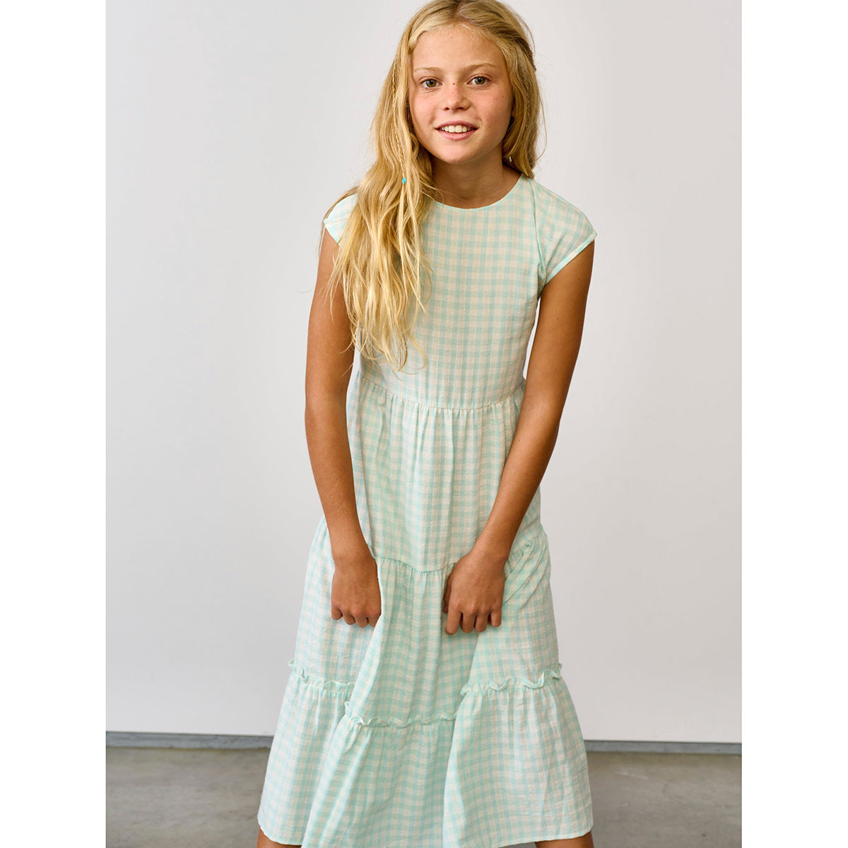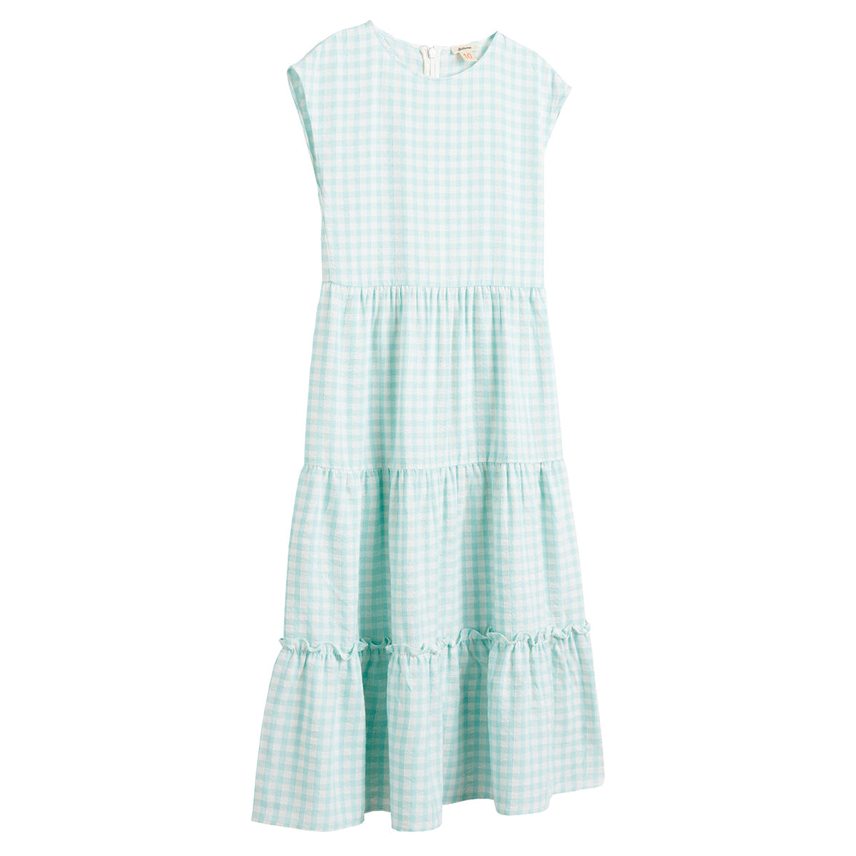 Tiered styles like the Azul dress from Bellerose are a summer must-have for romantic looks. Crafted from a light viscose blend in mint gingham, this long dress features a fitted bodice zipped in the back and a skirt that flares from the waist down, finished with a ruffled trim. Modern boho-chic never looked so good.