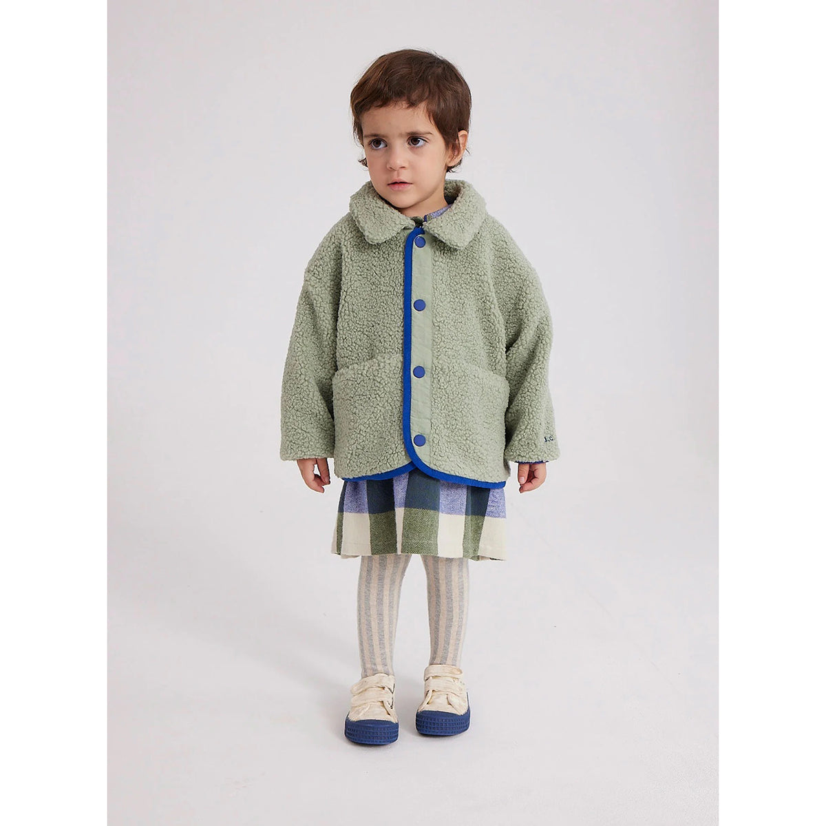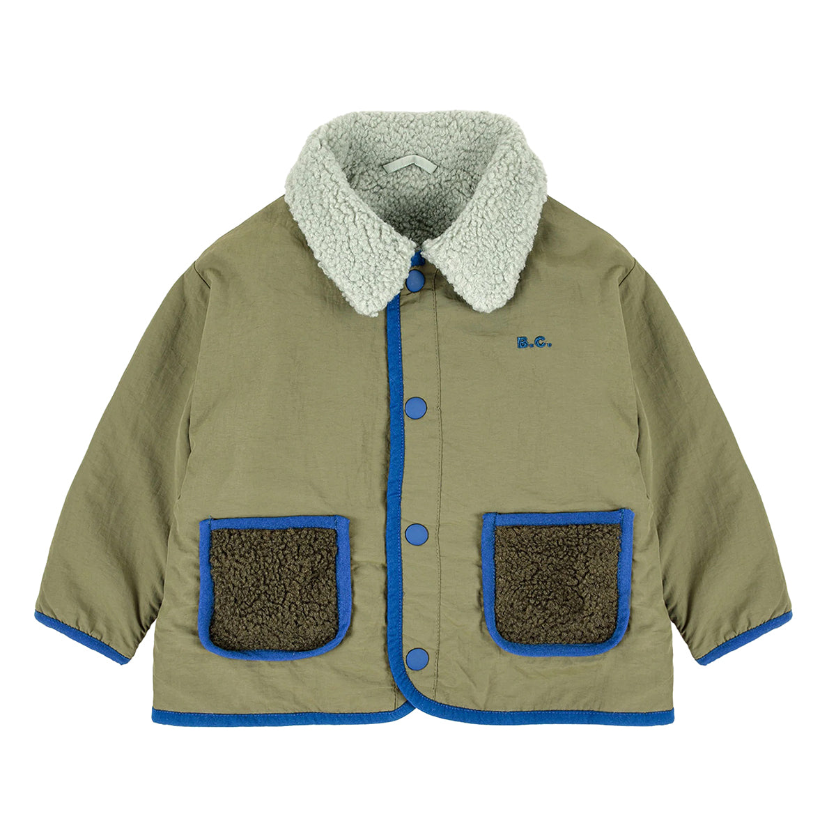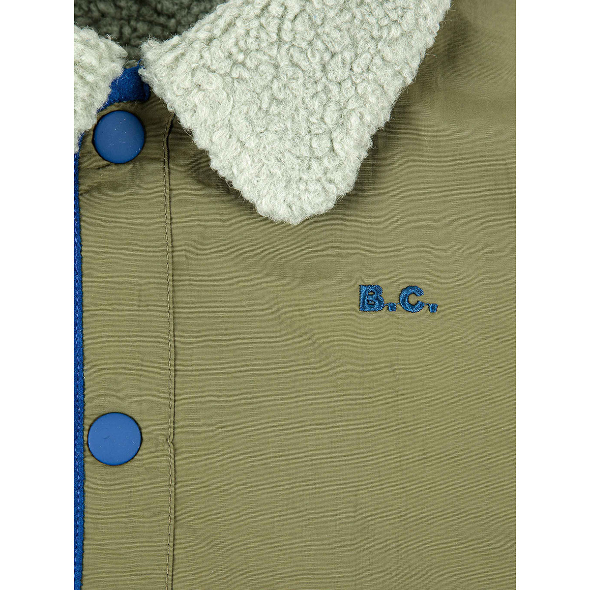 Lovely jacket from Bobo Choses designed with spread collar, long sleeves, dropped shoulder, front snap fastening, contrast fabric details, embroidery and patch pocket.
