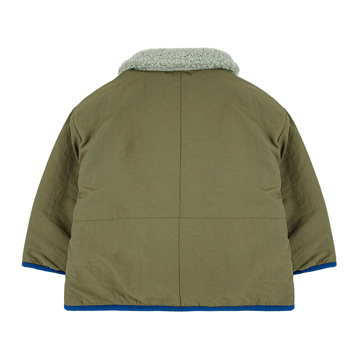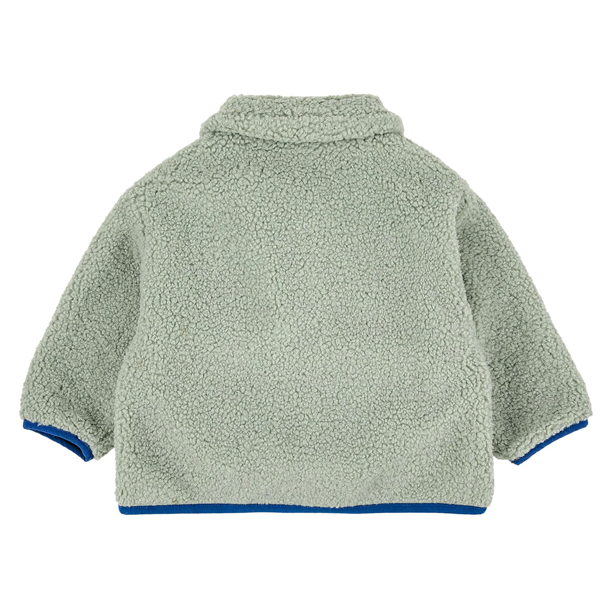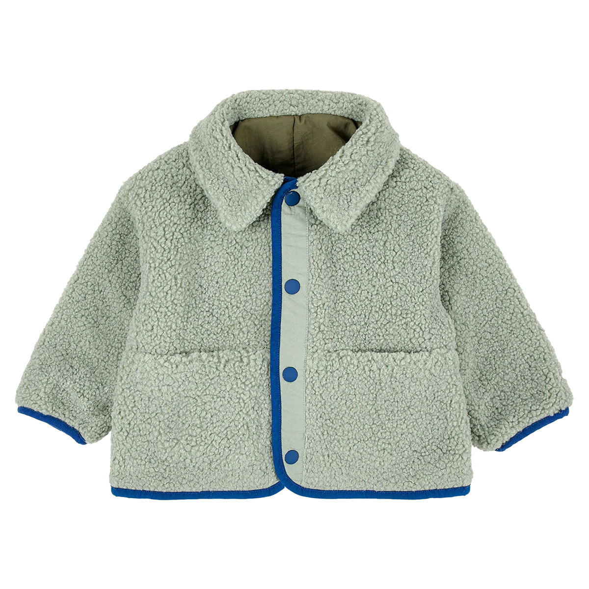 Lovely jacket from Bobo Choses designed with spread collar, long sleeves, dropped shoulder, front snap fastening, contrast fabric details, embroidery and patch pocket.