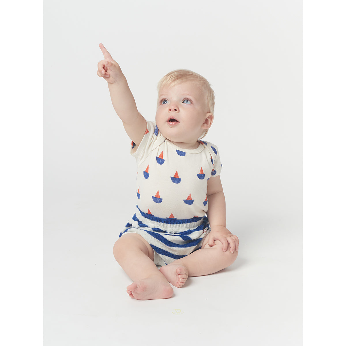 This item belongs to Bobo Choses' spring/summer 2023 collection 'LIVING IN A SHELL'. "We are sensitive, caring and shy. We are not made for the spotlight, but shine under a different light. We are quiet because we are peaceful. Our eyes meet everyone else’s. We like making everyone around us comfortable. We enjoy our ears, so we listen more than we talk. We like to dress up in costumes and wear masks. We prefer the sea over the city. We make the world a gentler place. We live inside our shell. Our shyness is a character trait, not a flaw."