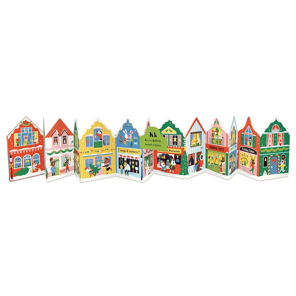 Everyone is busy on Christmas Street! Who is baking gingerbread? Who is wrapping presents? And who's that coming down the chimney? With bright, cheerful artwork from Ingela P Arrhenius, this spectacular lift-the-flap Christmas alphabet story is a book, a fold-out play-scene, and a beautiful festive frieze to decorate your room. Read the rhyming story, lift the festive flaps, learn the letters of the alphabet and seasonal words, and when you're finished, flip the book and have fun with the giant snowy concertina play-scene on the reverse.