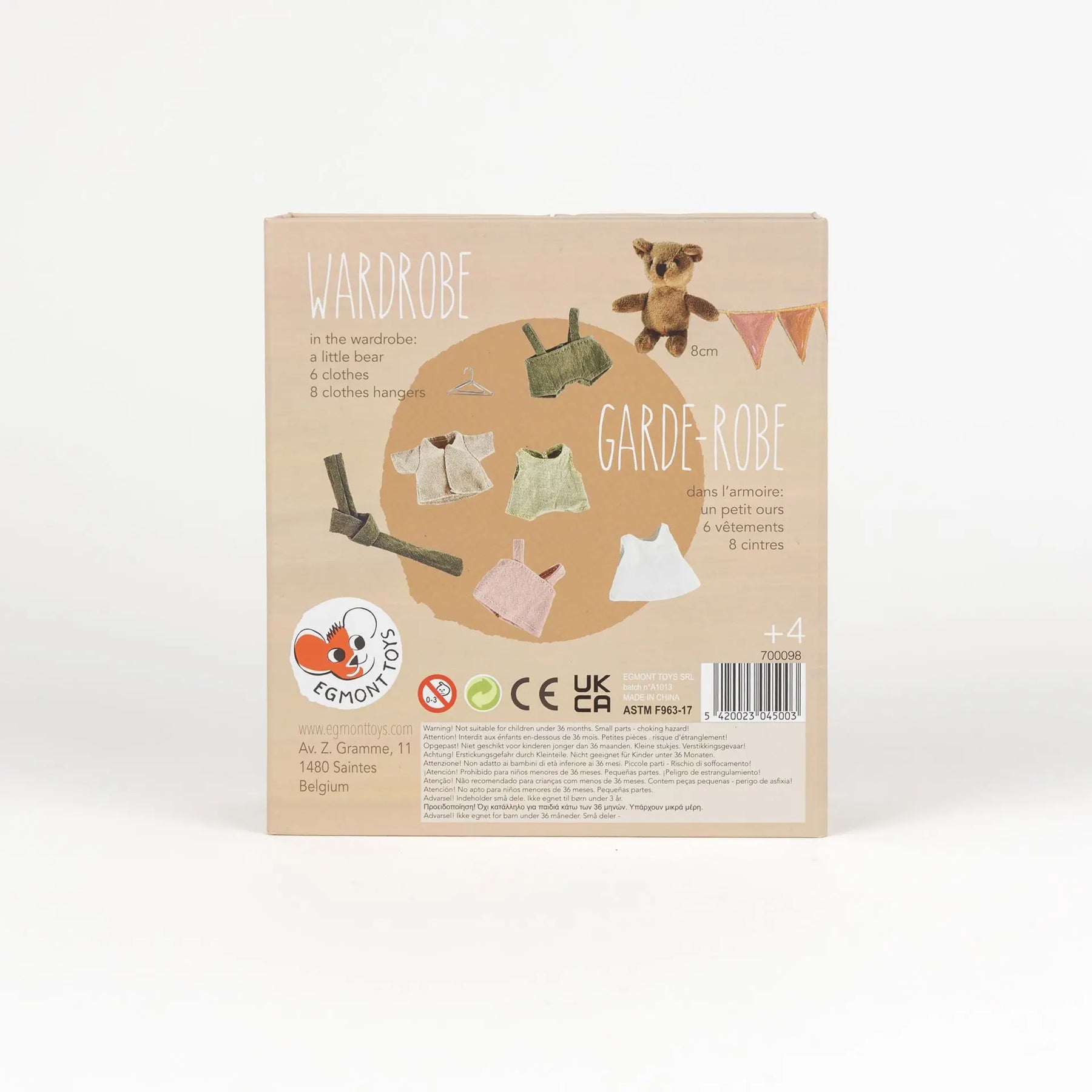 A little bear needs dressing! Open the soft wooden doors to find six delightful outfits hanging on tiny hangers. Each morning becomes a gentle adventure choosing what to wear.