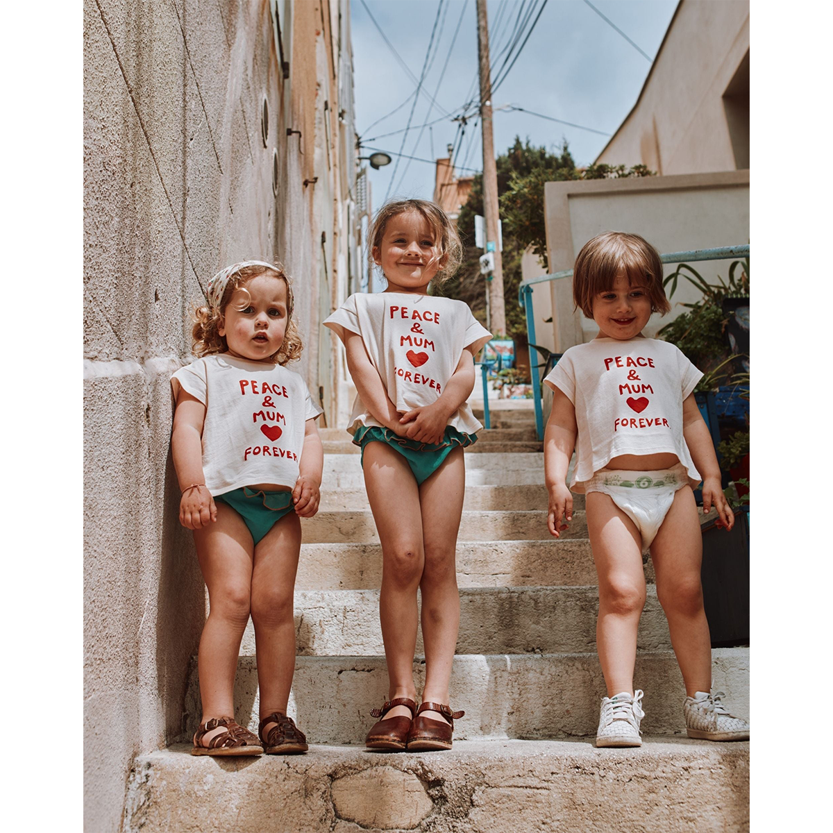 Ecru organic cotton t-shirt with a front print from Emile Et Ida. A Love t-shirt, dedicated to all children who love peace and their mommy forever, with a comfortable and stylish oversized fit. The hemmed and topstitched base and the mini sleeves offer an impeccable finish.