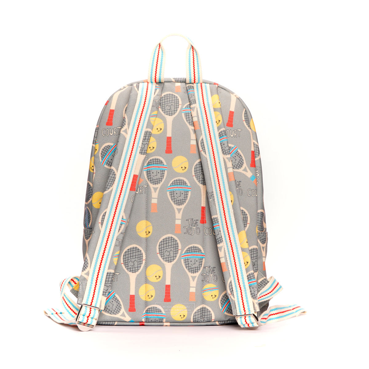 - Wide adjustable padded shoulder straps with metal accessories, small cotton webbing handle