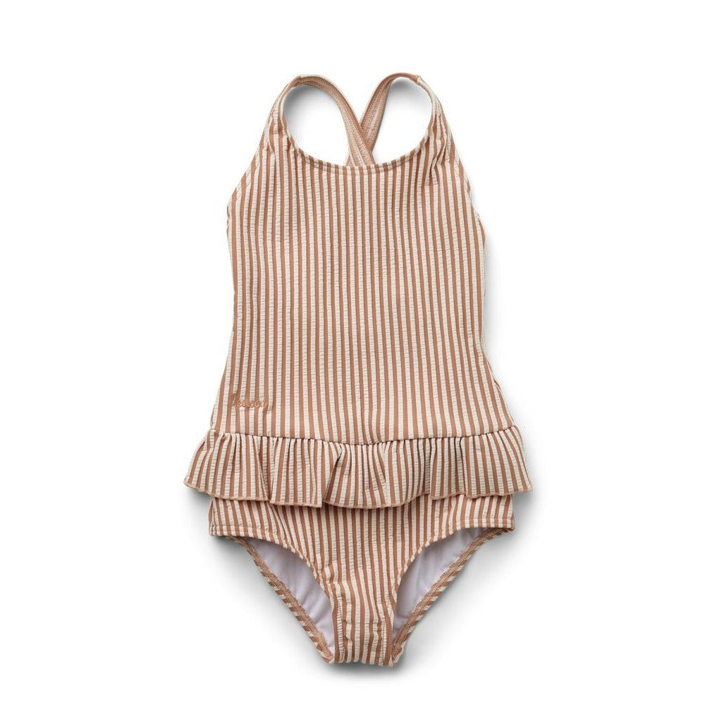 Let your little one jump into the waves in the Amara Swimsuit Seersucker made from recycled polyester.