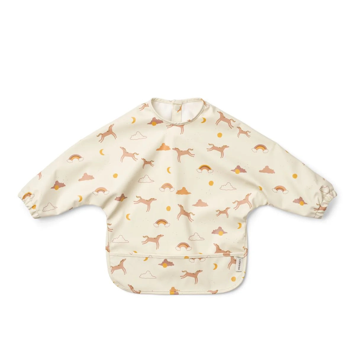 Lightweight Merle cape bib from Liewood for children who are learning to eat. The recycled material makes it instantly re-usable: simply rinse and wipe clean.
