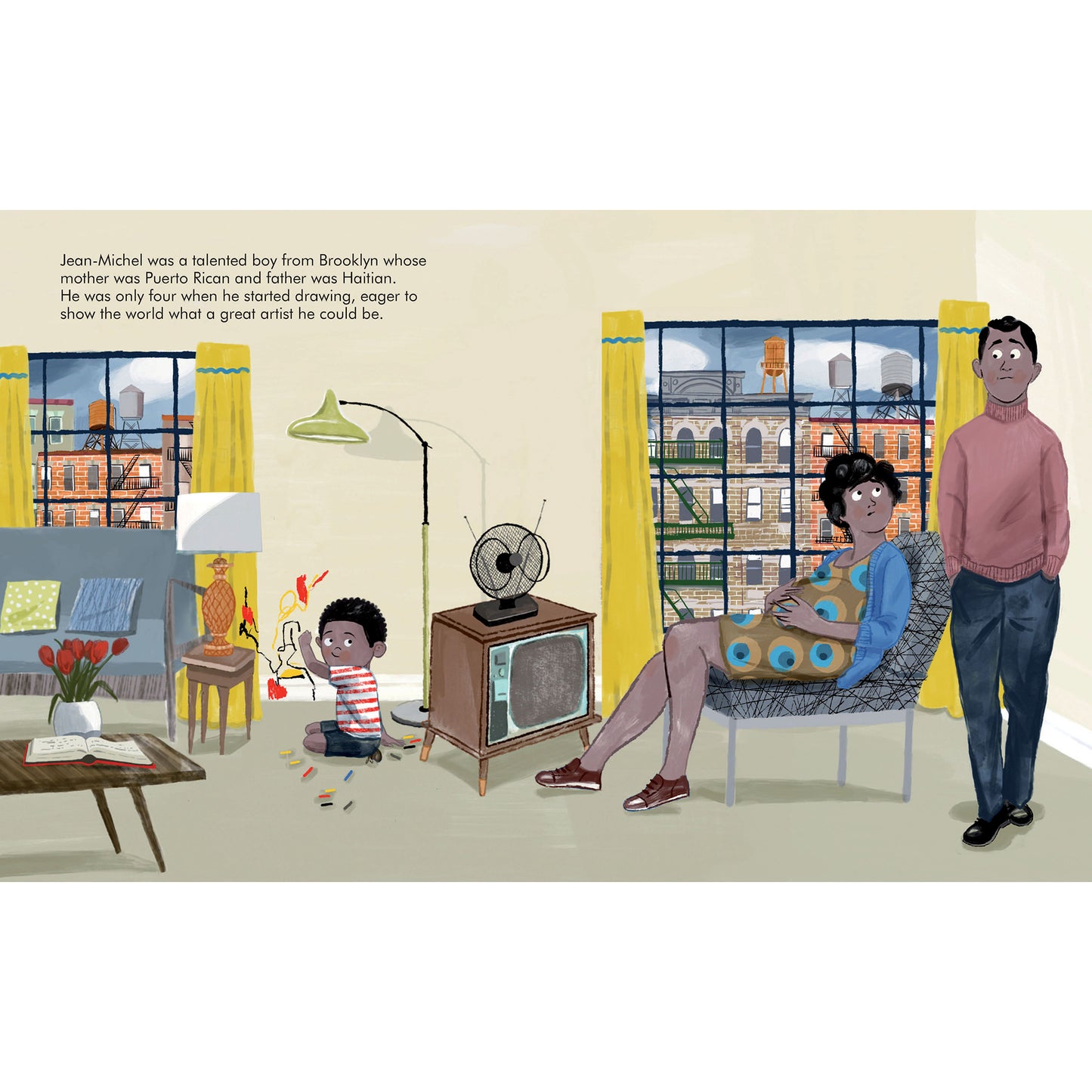 Jean-Michel was born in Brooklyn, New York. His father was from Haiti and his mother was Puerto Rican-American. As a child, his gift for art was noticed by his teachers and nurtured by his mother. After struggling in high school, he gained recognition as part of the graffito duo SAMO that spray-painted cryptic messages and images around the landscape of Manhattan's Lower East Side. He eventually made his way to the New York gallery scene and on to international acclaim.