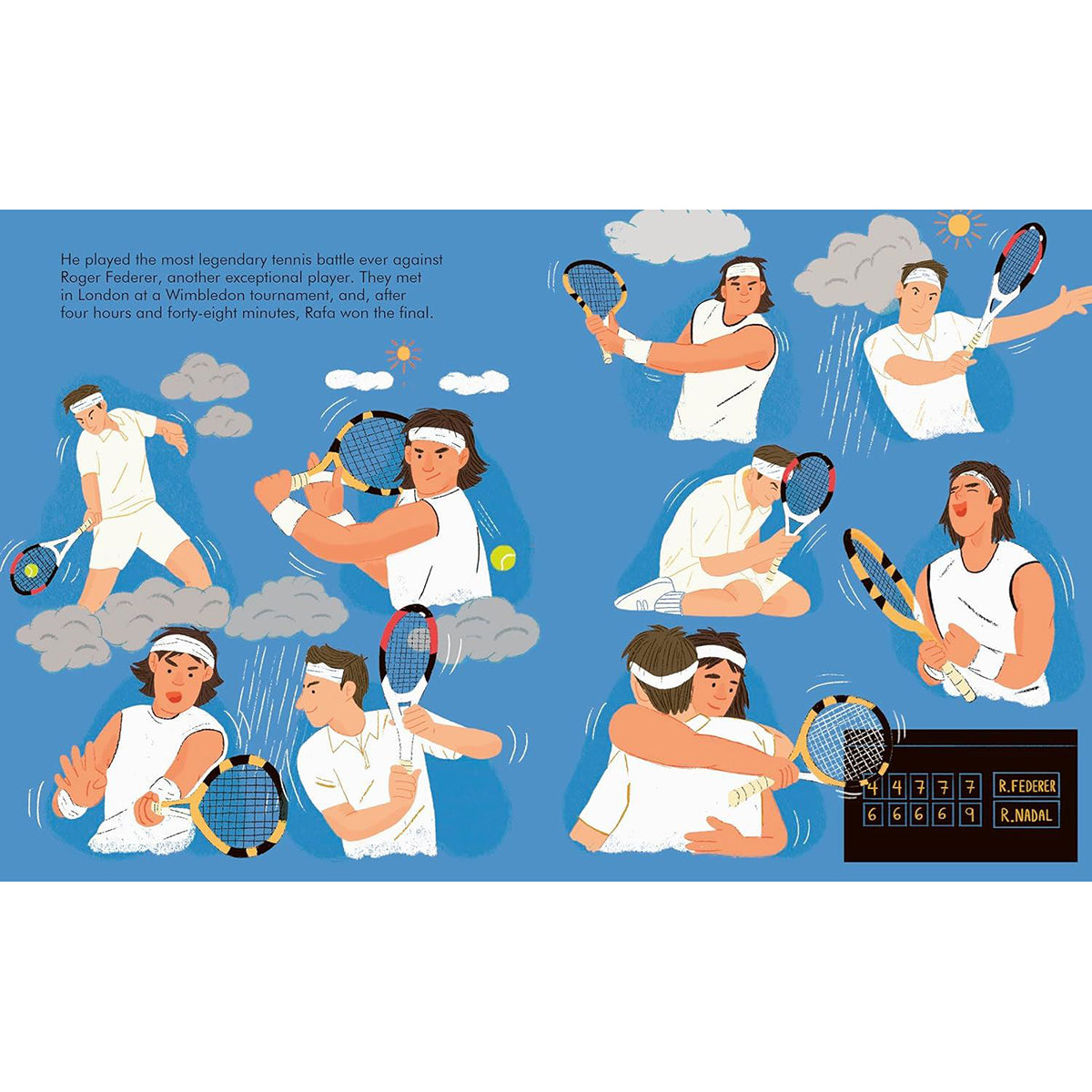 Learn about the incredible life of Rafa Nadal, the dedicated sportsperson who's tenacity and drive has inspired young athletes across the world. This powerful book features stylish and quirky illustrations and extra facts at the back, including a biographical timeline with historical photos and a detailed profile of the tennis player's life.