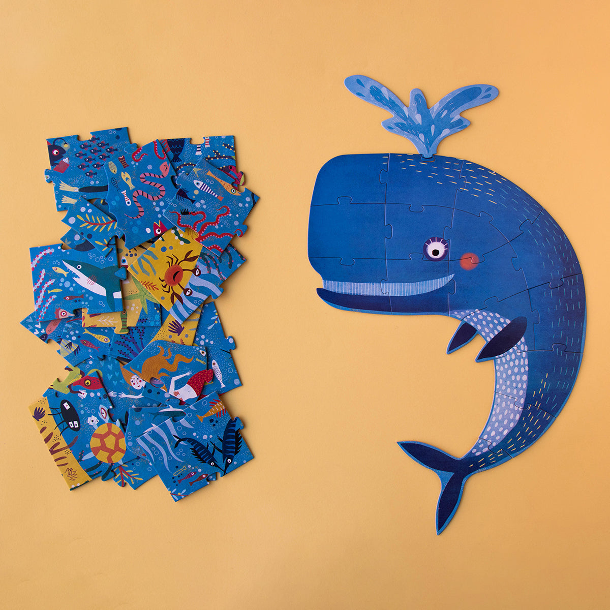 - A 36-piece shape puzzle starring a whale, allowing us to explore the deep sea