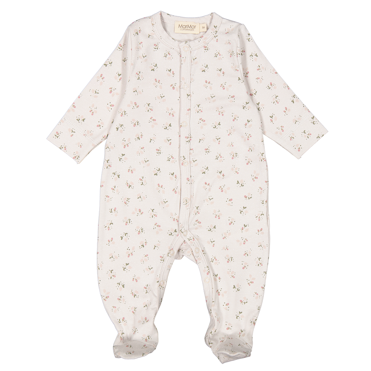 Long-sleeved romper with with footies from MarMar Copenhagen. The romper can open up all the way down from the neck through both legs with snap buttons for easy changing.