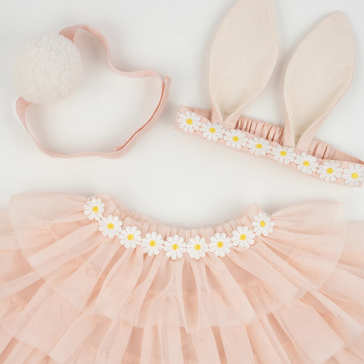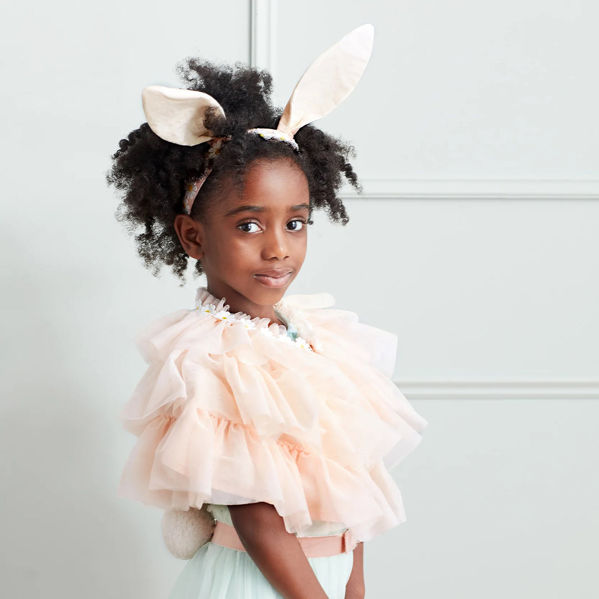 This beautiful bunny costume from Meri Meri is crafted from premium fabrics and embroidered details - perfect for Easter or Spring dressing up. It includes three separate pieces - a headband with 3D ears, a romantic layered tulle cape and a velvet waistband with a soft pompom tail.