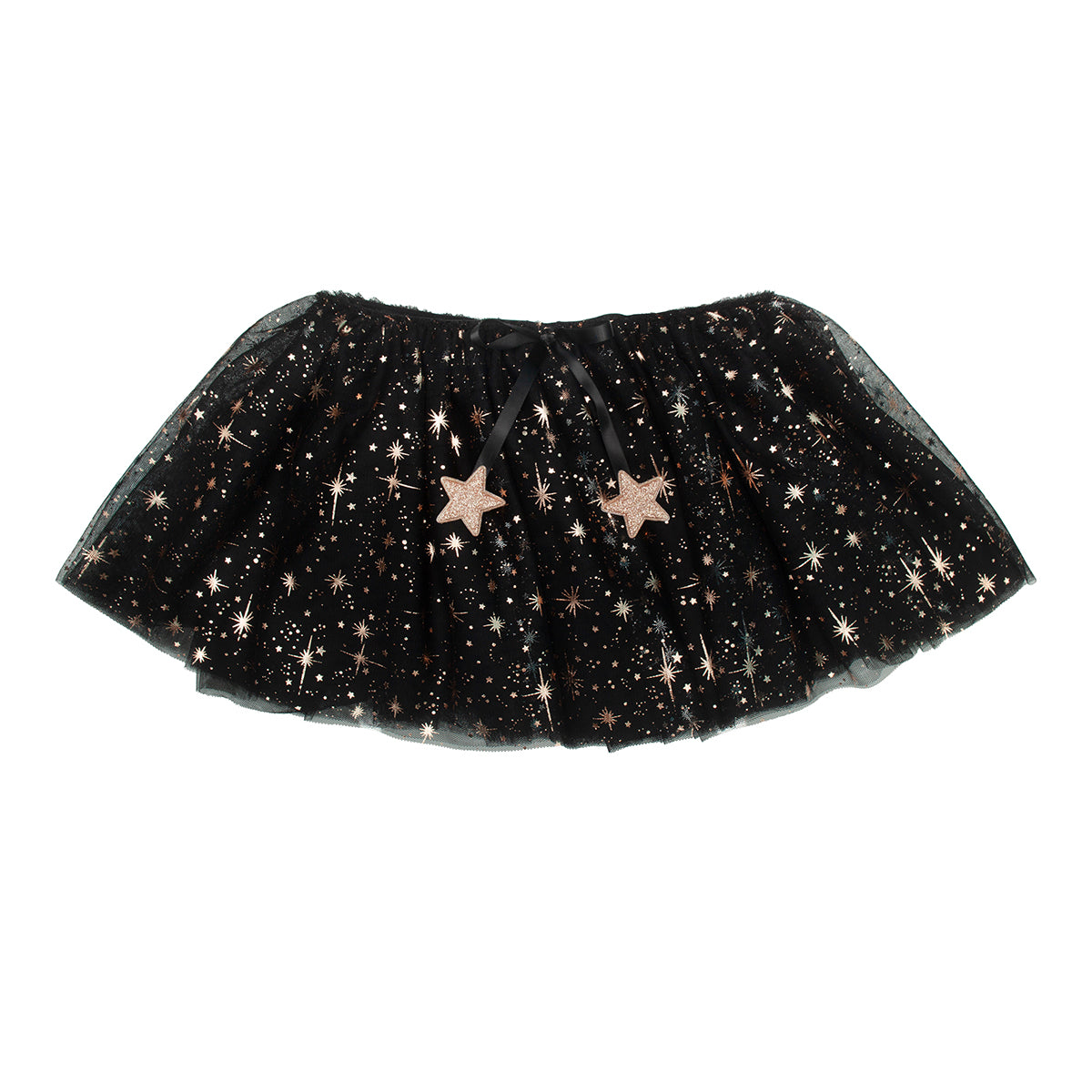 Cast a spell in style this spooky season with the Aurora tutu from Mimi & Lula! This beautiful tutu in classic black with a spectacularly gold starry print is sure to add a fancy flair to any costume. Pair with the matching Aurora cape, hat or wand to complete the look.