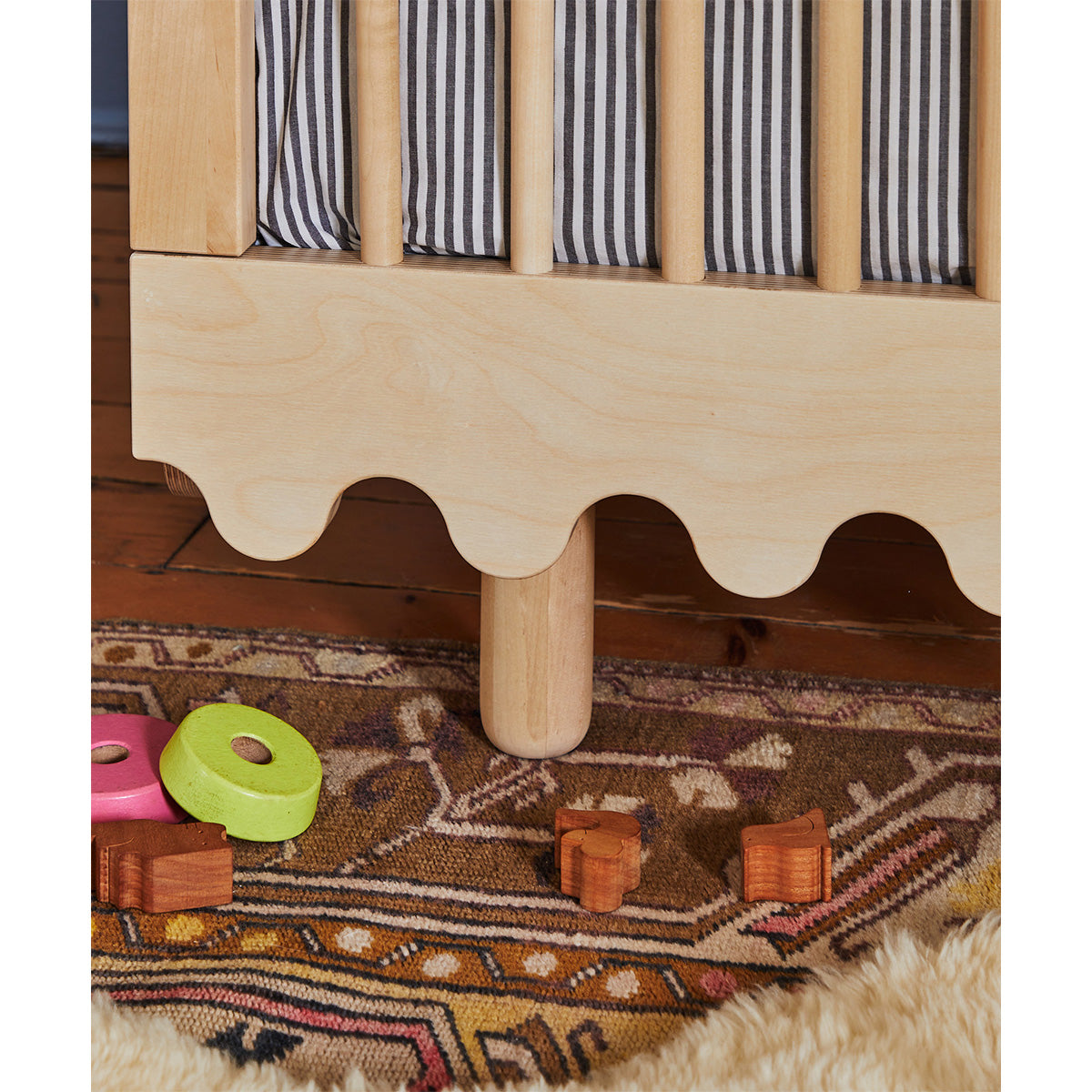 The Moss Cot Bed from Oeuf NYC exemplifies playful design, featuring a bold yet refined wave motif that creates a stunning focal point for your nursery.