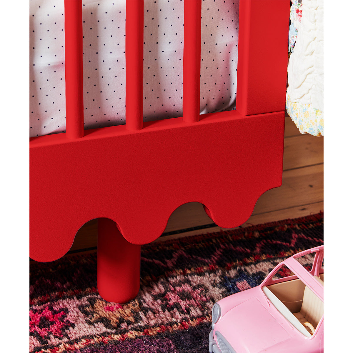 The Moss Cot Bed from Oeuf NYC exemplifies playful design, featuring a bold yet refined wave motif that creates a stunning focal point for your nursery.