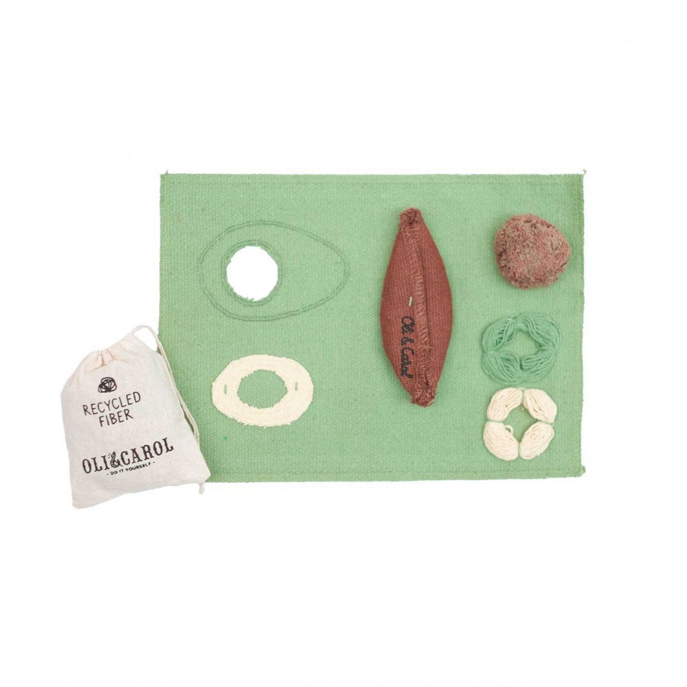 Kit includes: a canvas to cut out each element, threads, a natural recycled cotton bag and a needle to assemble your fruit and vegetables!