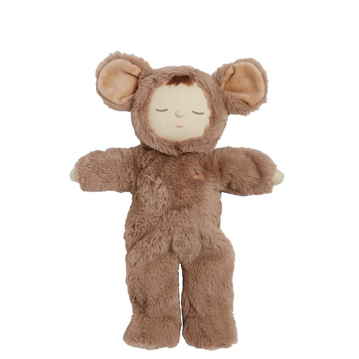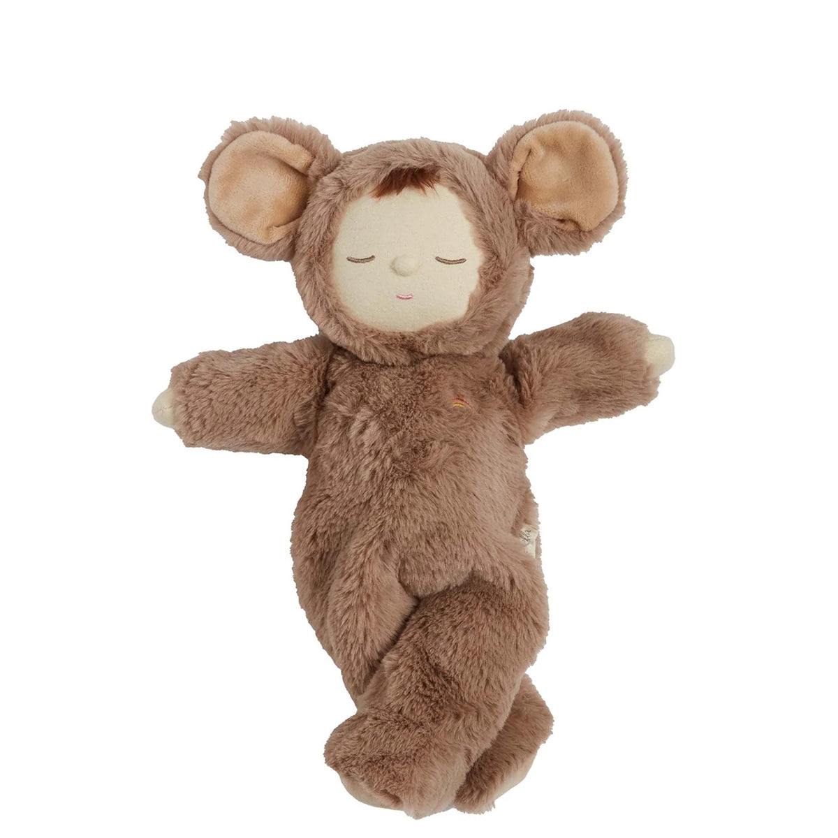 Mousy Pickle, so cuddly and cute, loves to doze in its soft fluffy suit. Made for snuggles and snoozy days, this velvety little Cozy Dinkum from Olli Ella loves to play!