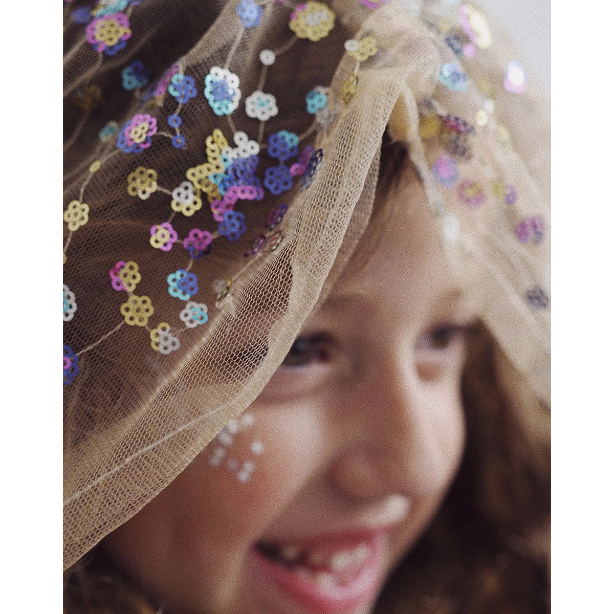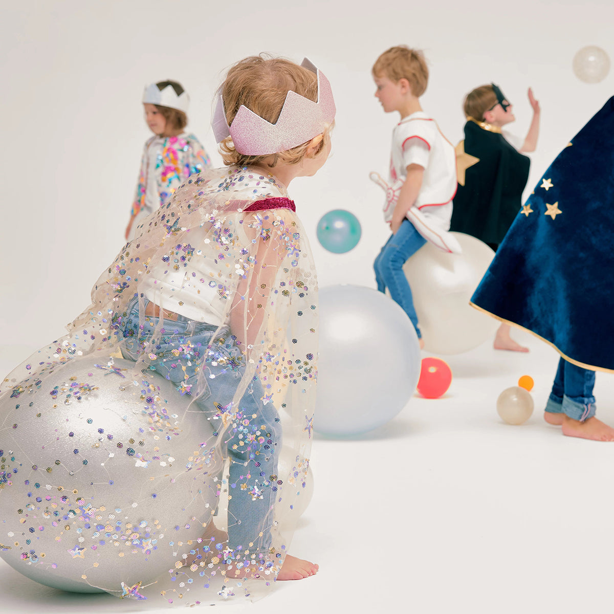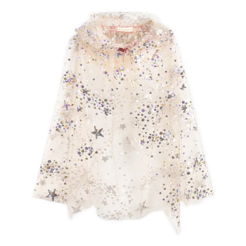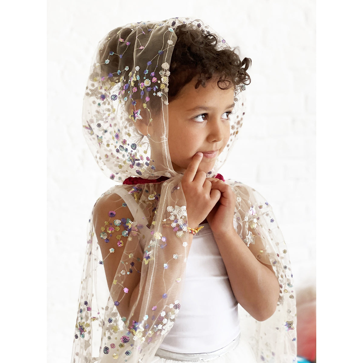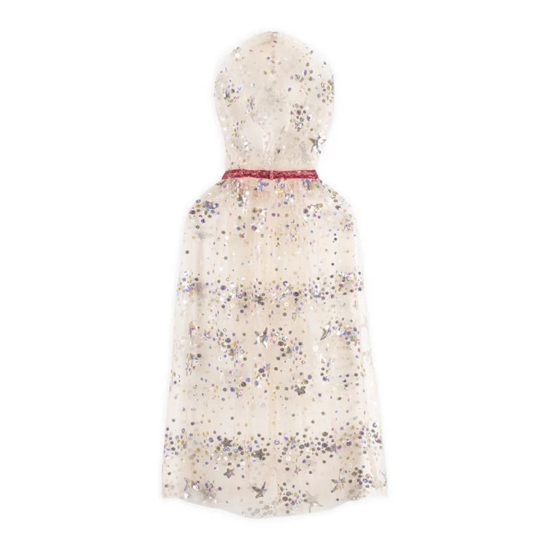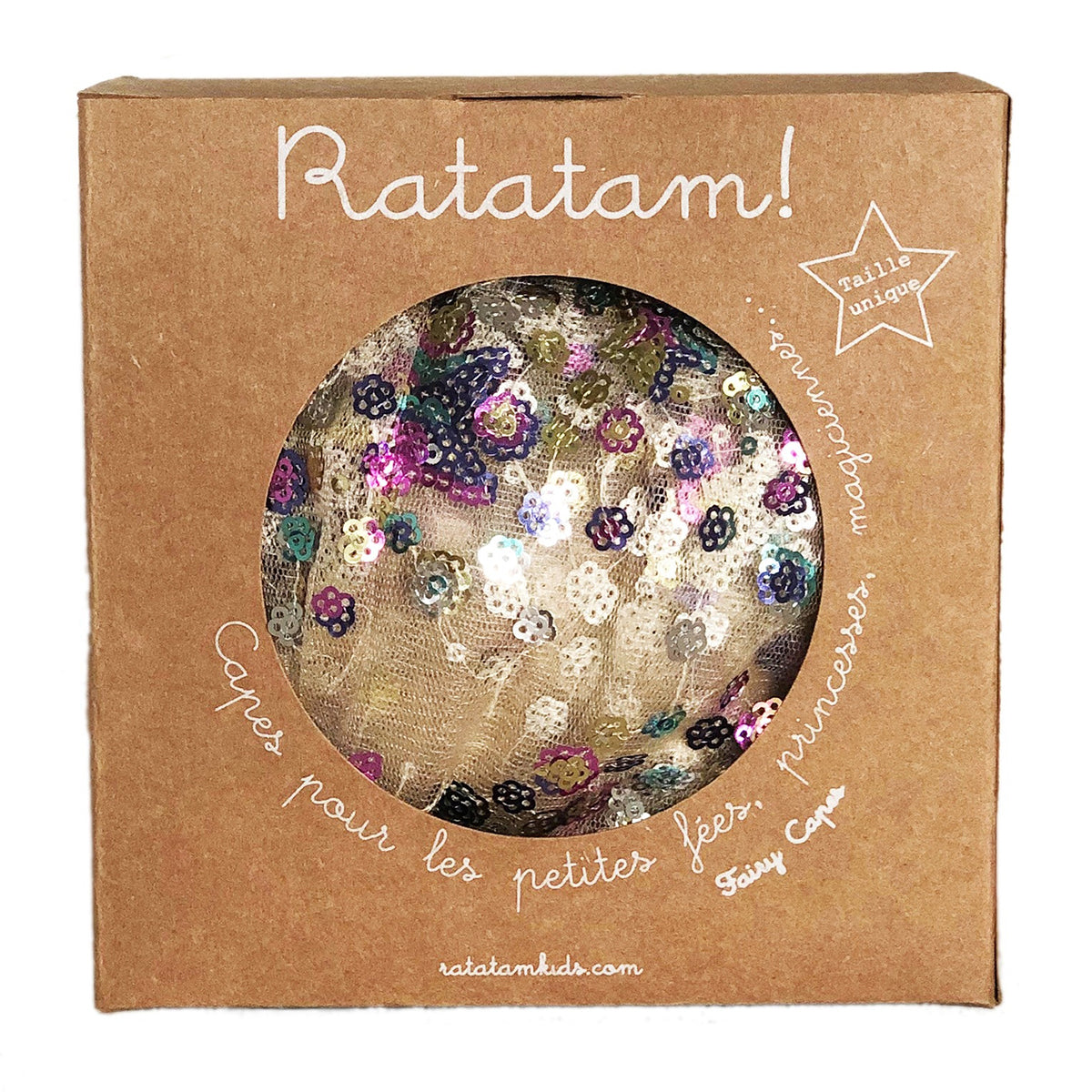 What better way to bring your favourite fairy tales to life than with this sparkly multicoloured fairy cape from Ratatam! Fairy, princess, elf, magician’s cape… a must-have item in your dress up trunk! The fairy cape is made of tulle and embroidered with multicoloured sequins.