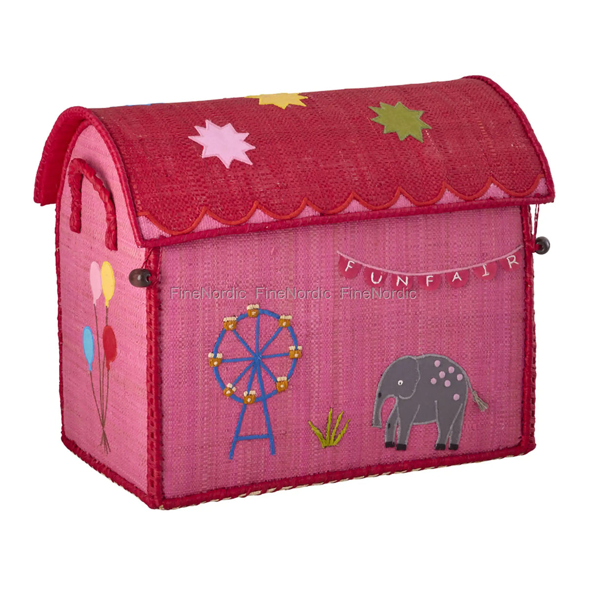 Rice Raffia Toy Storage Basket: Pink Funfair - Small