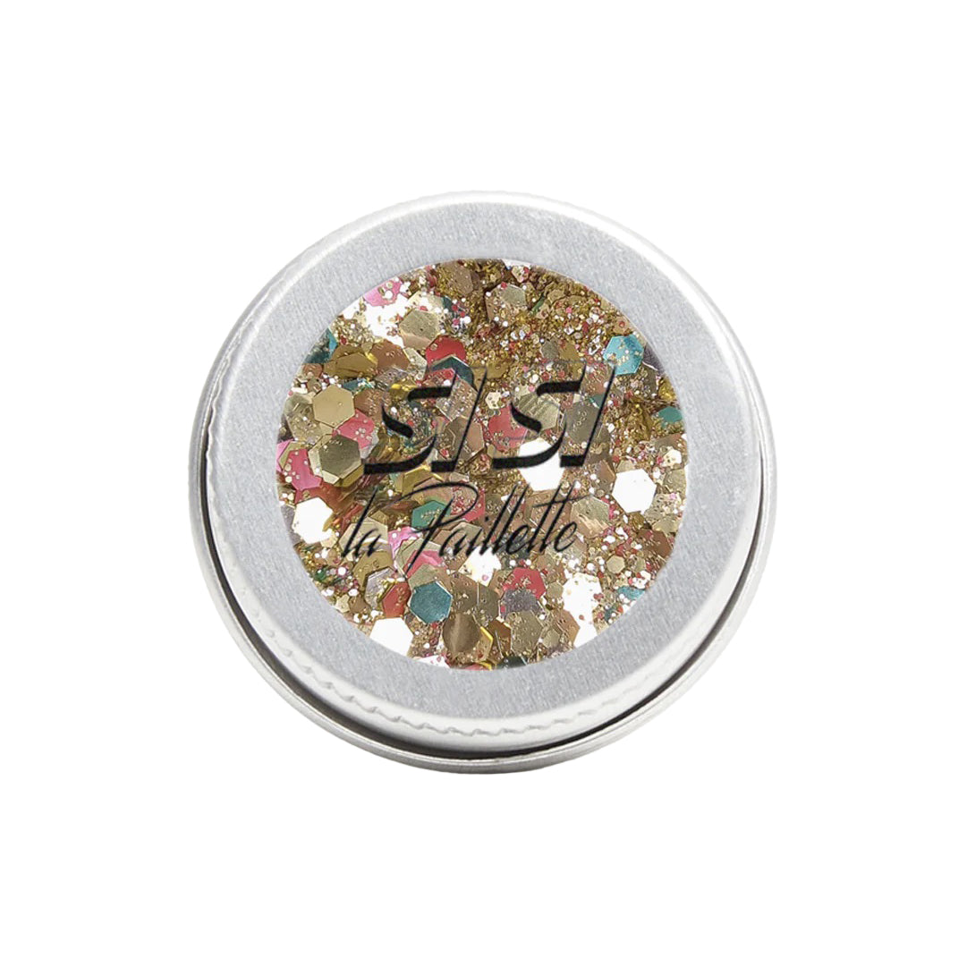 1. Apply a layer of Si Si La Paillette's shea applicator balm to the area of your choice (corner of the eyes, eyelids, hair, beard, cheekbones, neckline, etc.) using Si Si La Paillette's applicator brush