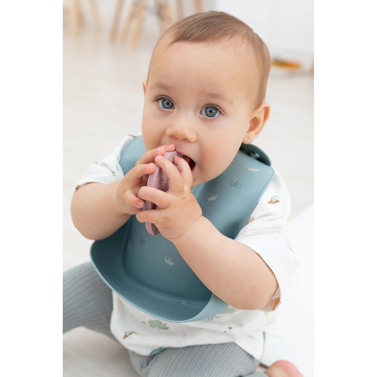 Silicone teether from Cotton Cloud. They contain no BPA, no BPS, no PVC, no phthalates and no lead. The solid shape prevents bacterial growth. The back has a gently structured surface with small nubs. The baby can suck on it during teething and thus massage the sensitive gums. Designed In Germany.