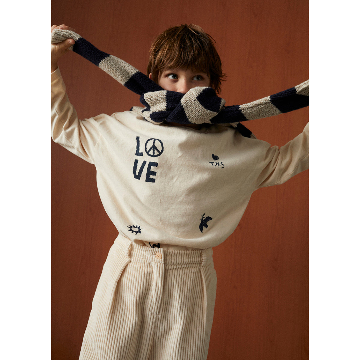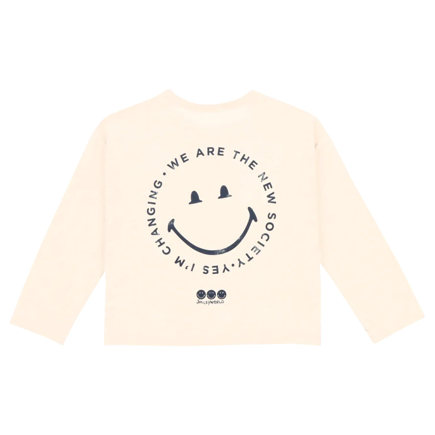 The stylish Smileyworld® Love & Change Tee from The New Society is full prints of messages that kids send to the world. Love, peace, open to change... This long-sleeved tee was created in collaboration with Smiley World and their fun faces can be seen at the front and back of this piece.